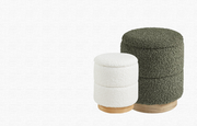 Bente Wooden Base Storage Round Olive Boucle Ottoman, Fully assembled