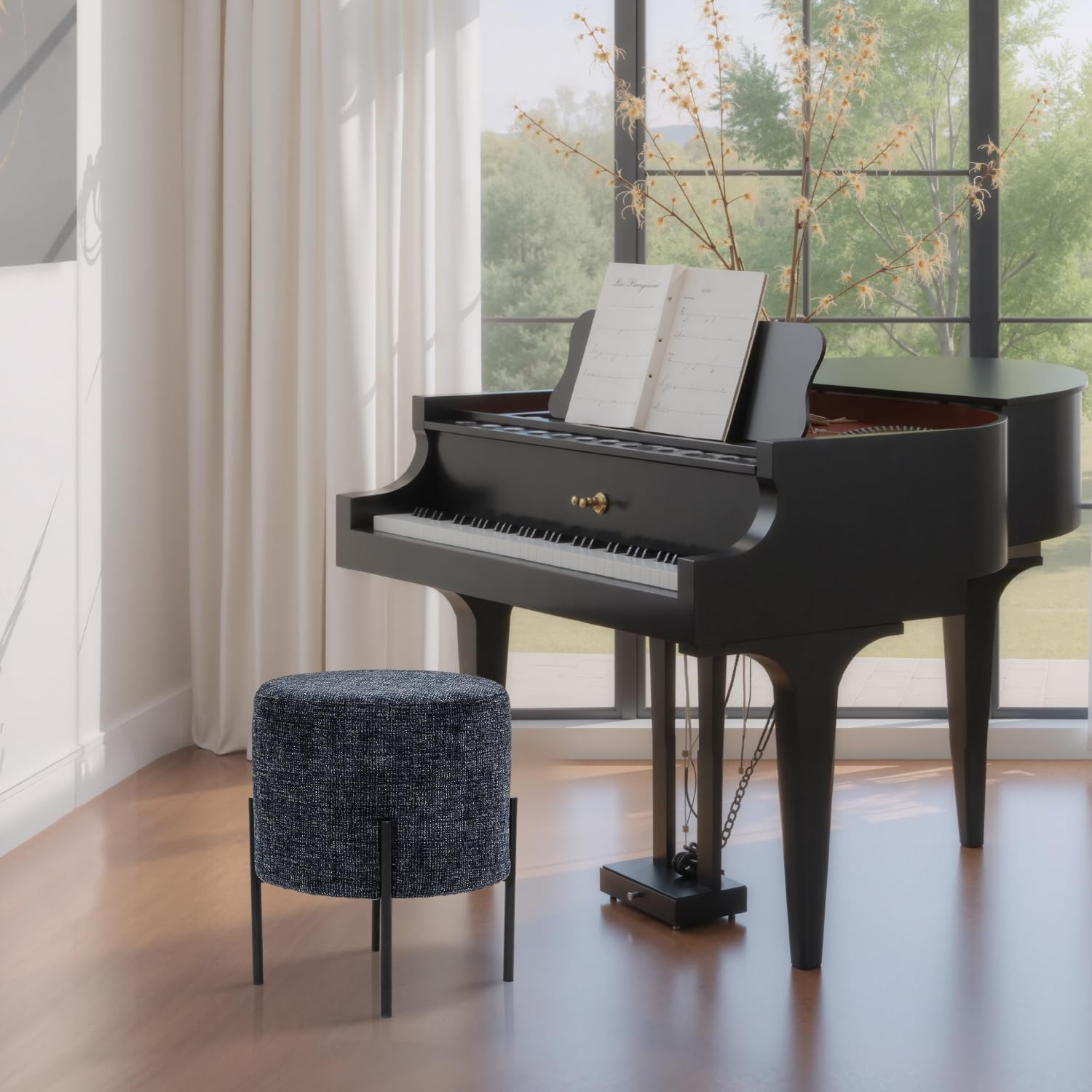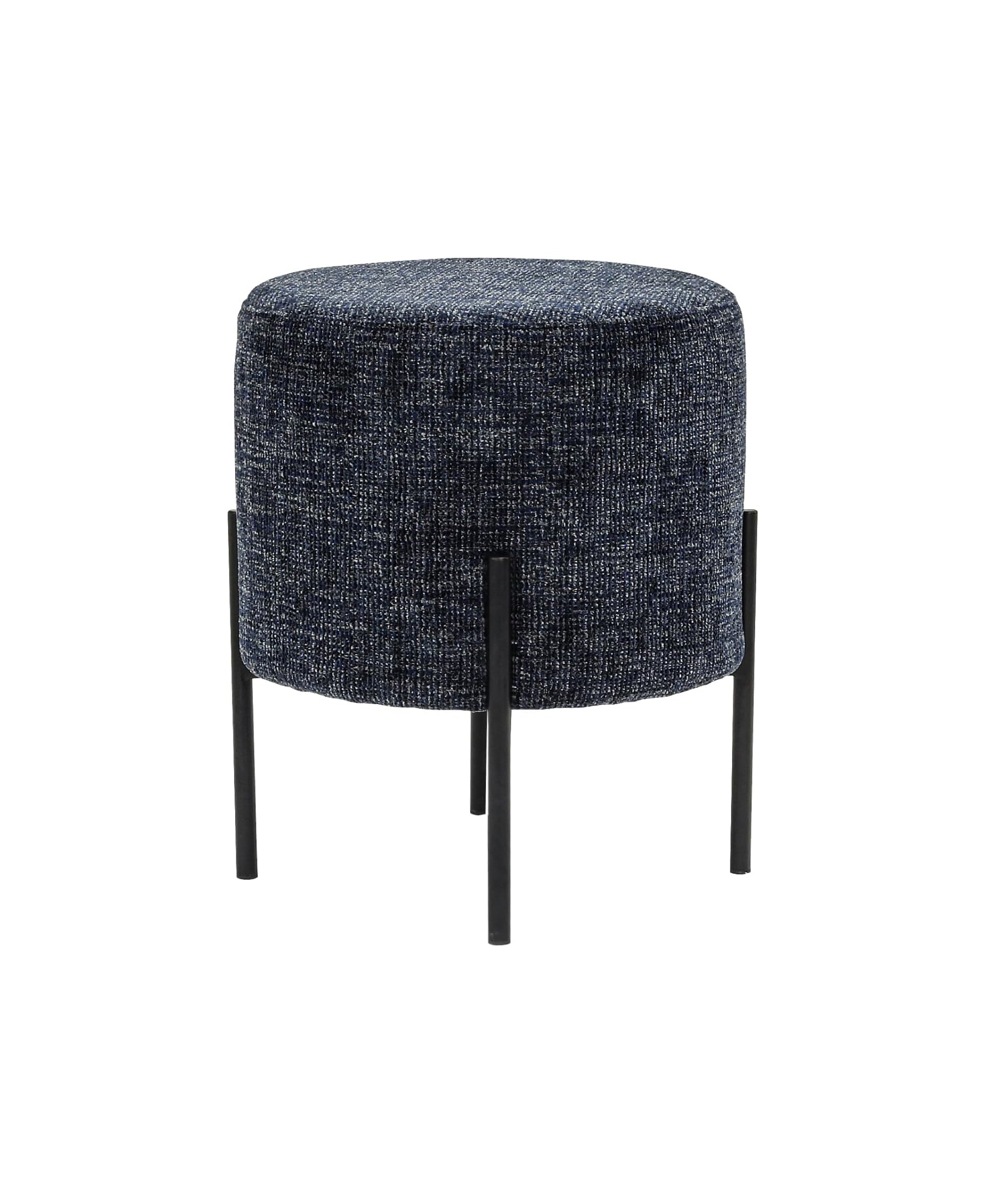 Linen Round Multifunctional Stool with Black Metal Legs (Blue)