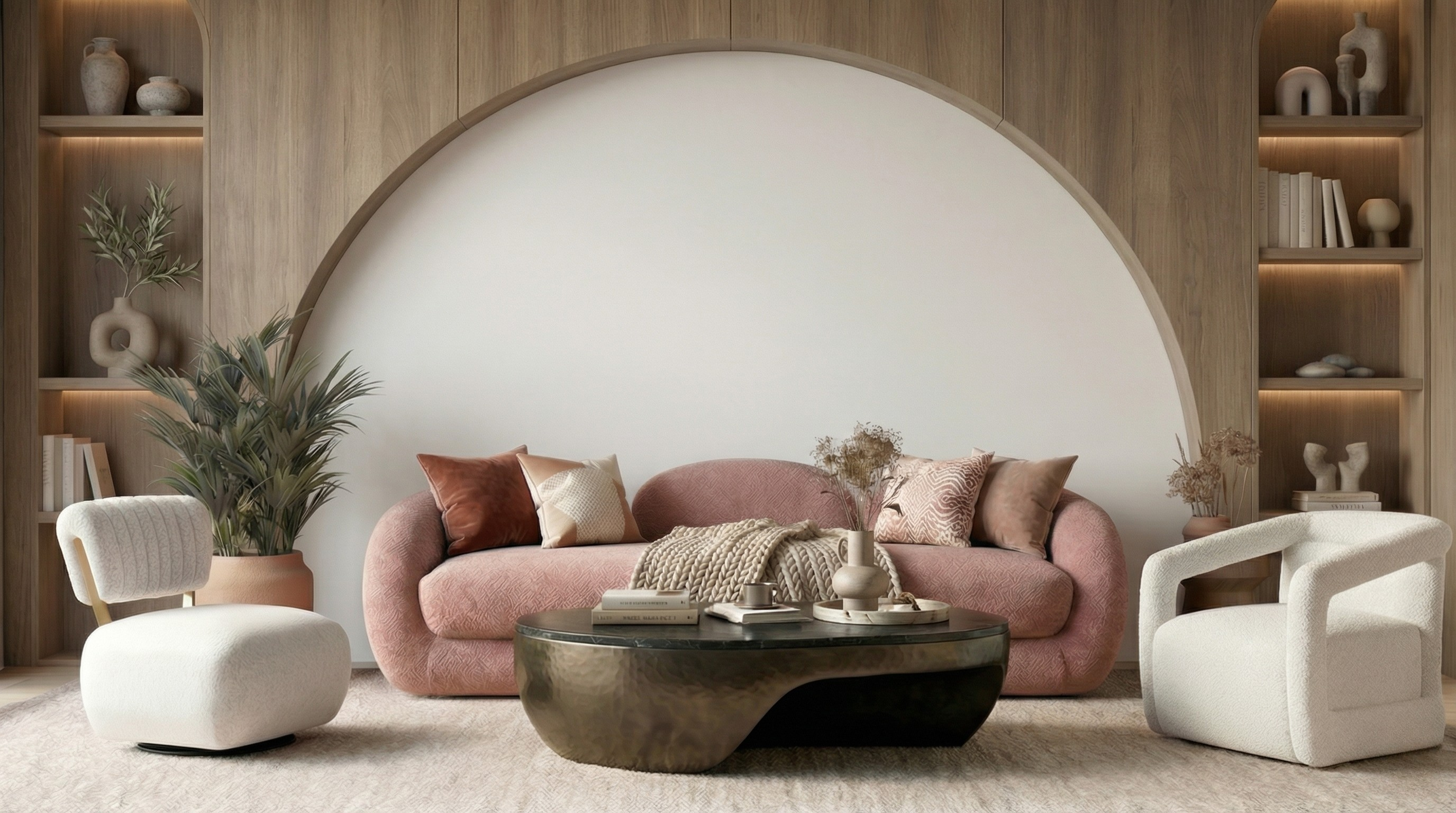 Paulo Round Boucle Ottoman with Comfy Padded Seat (White) #100022