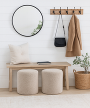 Bente Wooden Base Storage Round Taupe Boucle Ottoman, Fully assembled
