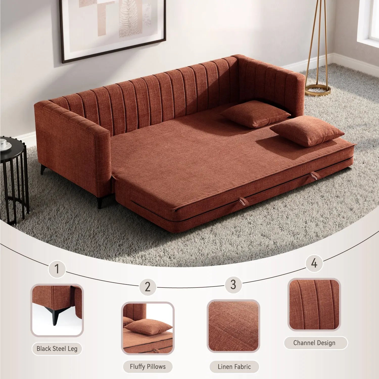 Seamless 2-in-1 Conversion: The intuitive folding mechanism allows for a quick transition from sofa to bed—no bulky springs or heavy mattresses required.