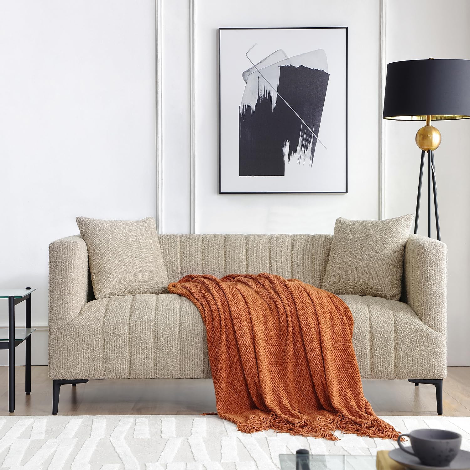 86" Wide Mid Century Modern Upholstered Sofa with Comfort Cushions (Off White)