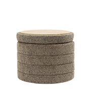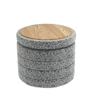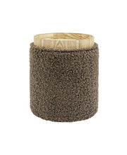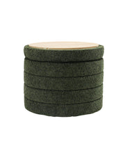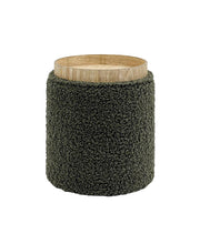 Bente Wooden Base Storage Round Olive Boucle Ottoman, Fully assembled