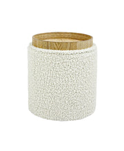 Bente Wooden Base Storage Round Mustard Boucle Ottoman, Fully assembled
