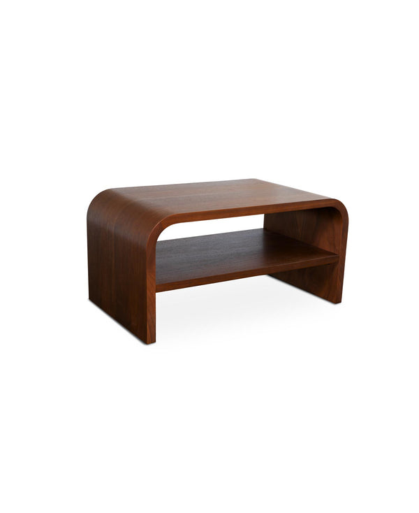 The Jeffrey Coffee Table presents a seamless fusion of form and material. Crafted from solid wood and finished in a rich walnut veneer, its curved waterfall silhouette offers a sculptural profile while maintaining practical function. The integrated lower shelf provides additional surface area without disrupting the table’s clean, continuous lines. Ideal for both residential and hospitality settings, Jeffery offers a grounded, architectural presence with warm, natural character.