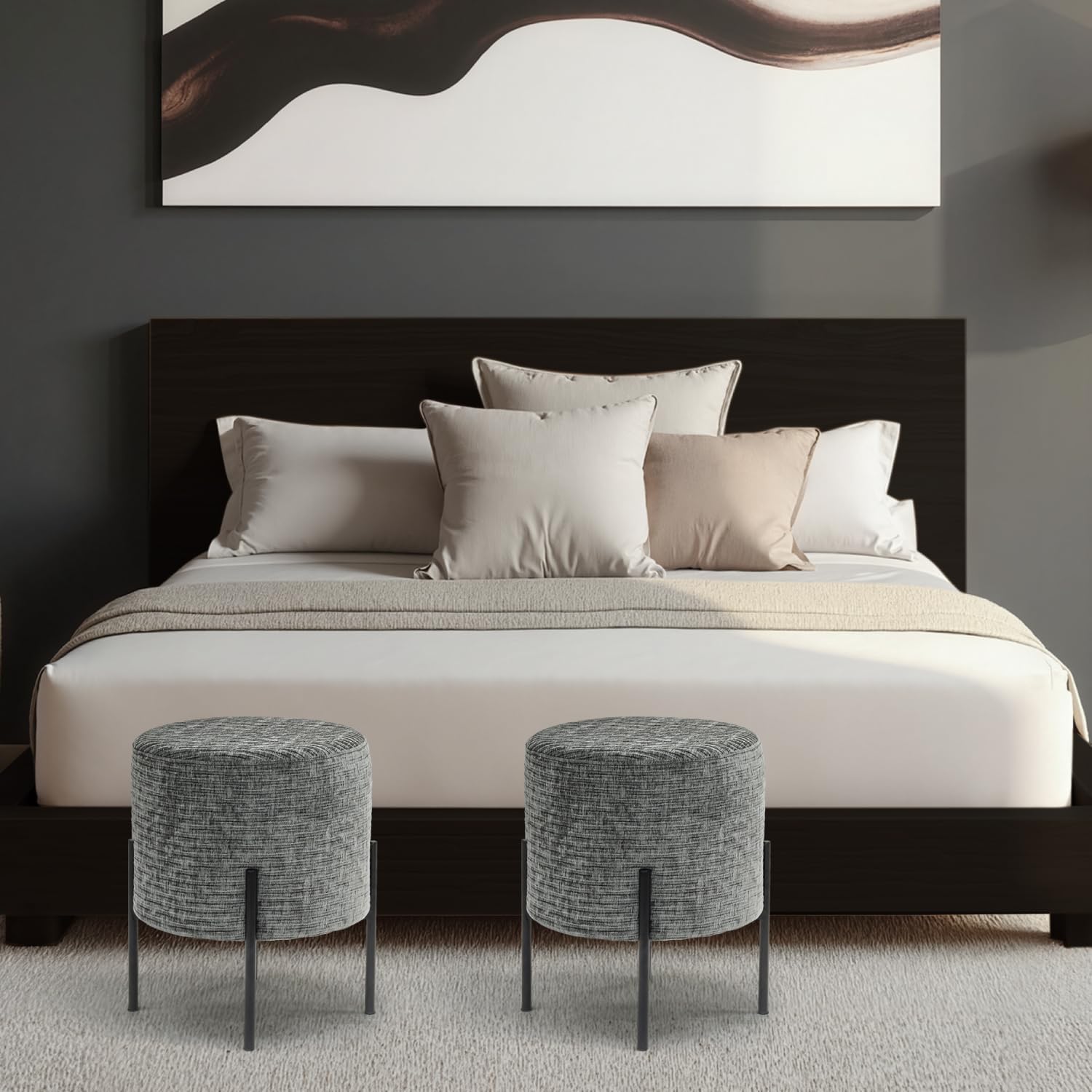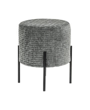 Linen Round Multifunctional Stool with Black Metal Legs (Gray)
