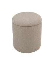 Bente Wooden Base Storage Round Olive Boucle Ottoman, Fully assembled