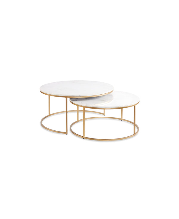 2-Piece Nesting Marble Coffee Table Set – Gold Base