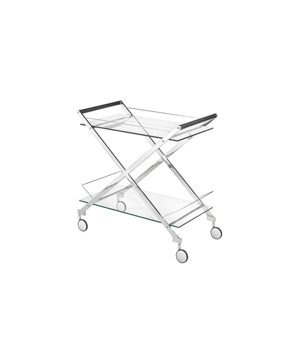 • Glass Shelving and Polished Stainless Steel Frame with Casters