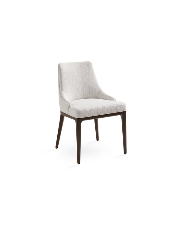 A refined blend of comfort and craftsmanship. This linen upholstered dining chair brings tailored elegance to your dining setup with its soft curves and rich wood base, delivering both timeless style and everyday functionality.