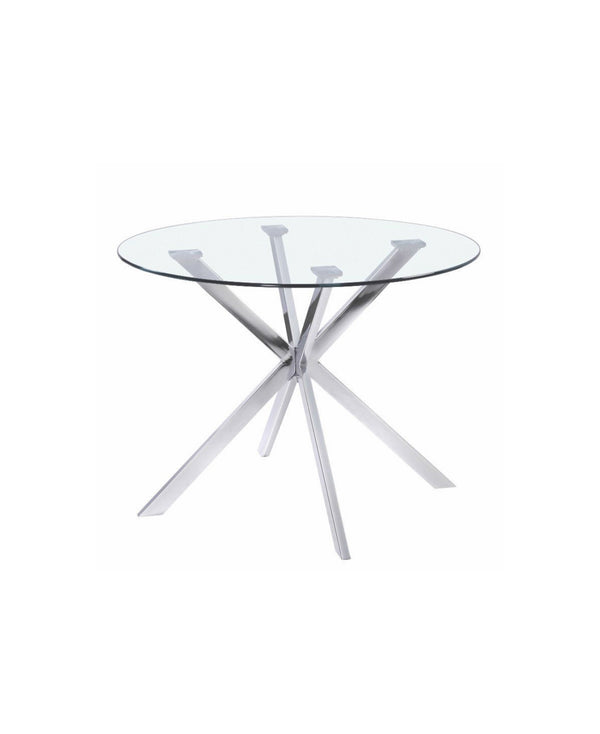 • Base is made of 4 criss-cross steel slats and is perfectly paired with a round tempered glass top.