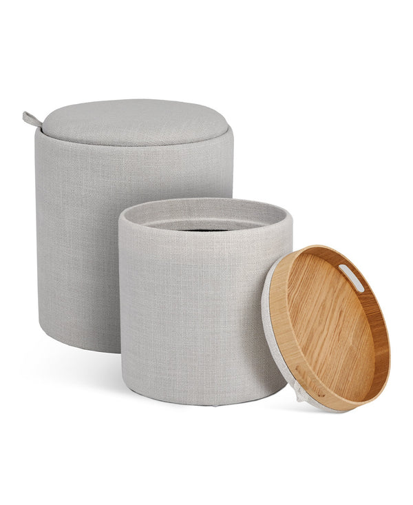 Lambert Round Tray Ottoman (Set of 2): Light grey linen