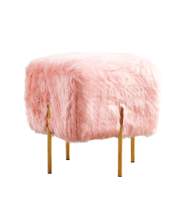 This rectangular cushioned top provides a comfortable and supportive seating or resting surface. The cushioning is typically soft and plush, allowing you to relax and unwind while enjoying your favourite activities, whether it's reading a book, watching TV, or engaging in conversations with friends and family. Pink Fur Cube-Shaped Cushioned Stool.