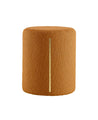 A distinguishing feature of this ottoman is the elegant band that encircles its lower section. This band is a harmonious contrast to the main upholstery, as it's crafted from a sumptuous golden-brown leather that adds a touch of warmth and opulence to the piece. The leather band is expertly stitched, creating an intricate pattern that adds an artisanal touch.