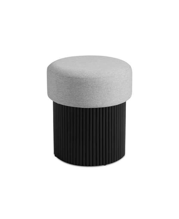 Elevate your living space with the Silver Cylinder Storage Ottoman, a versatile piece that combines style, comfort, and practicality.